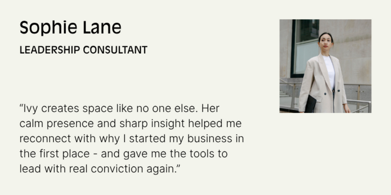 Welcome - I’m Ivy, a mindset coach and mentor for women in business who are ready to rewrite the rules of success. With over five years of experience guiding ambitious entrepreneurs and leaders, I help my clients shift from overwhelm and overthinking to calm, considered confidence. Through high-level coaching, thoughtful mentorship, in-person events, and intentional resources, my work supports women who are ready to lead with clarity - and build a business that feels as good as it looks.
